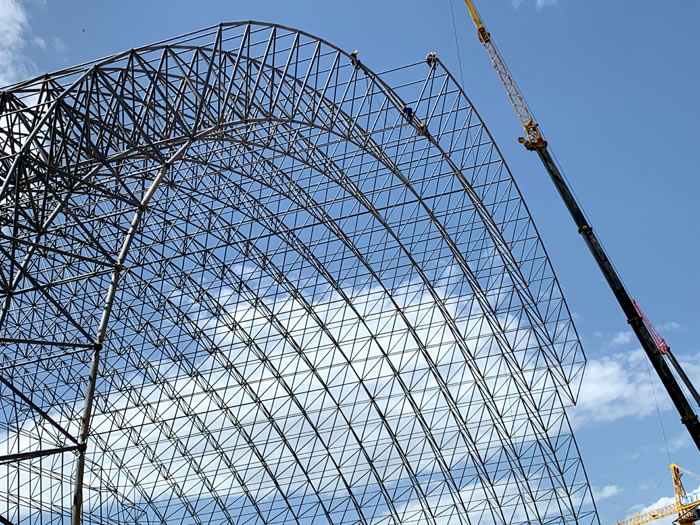 (2)网架加工前应对现场尺寸进行复测,确认无误后方可进行加工、安装;网架制作、运输、安装应遵守《空间网格结构技术规程》JGJ7-2010、《钢网架淄博螺栓球节点》JG/T 10-2009、《钢网架淄博螺栓球节点用高强度螺栓》 GB/T 16939-2016、《淄博钢结构淄博工程淄博施工规范》 GB50755-2012、《淄博钢结构淄博工程施工质量验收标准》 GB50205-2020。